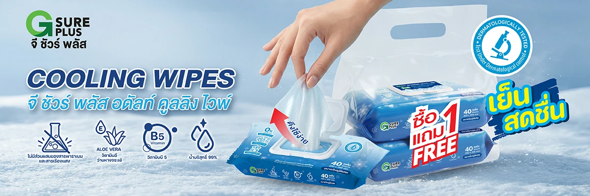 G SURE PLUS ทิชชู่เปียกสำหรับผู้ใหญ่ สูตรเย็น บรรจุ 40 ชิ้น