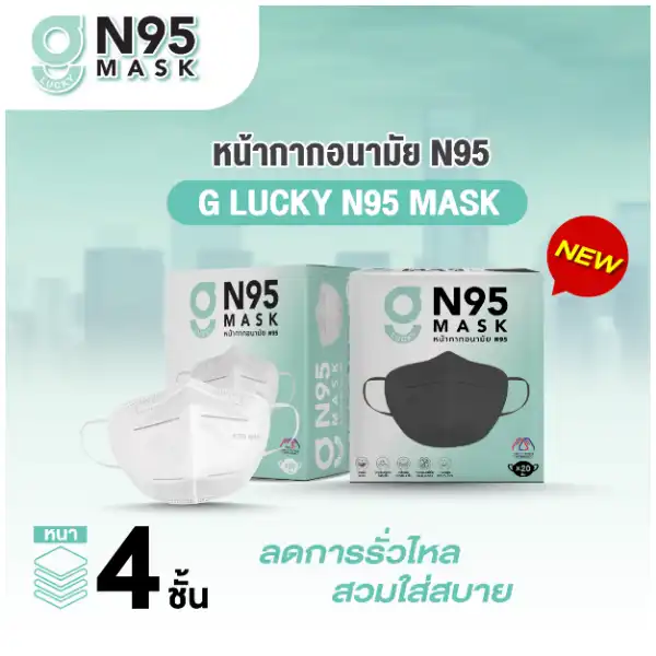 G LUCKY หน้ากากอนามัย N95 สีขาว บรรจุ 20 ชิ้น (แพ็กคู่)