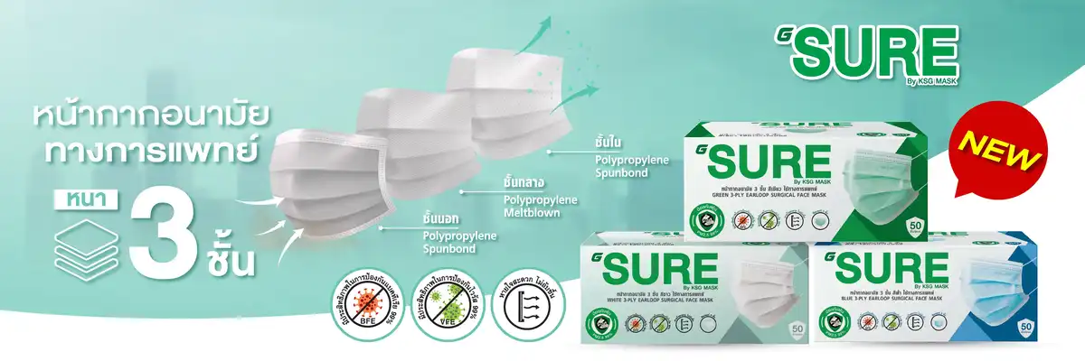 G SURE หน้ากากอนามัย สีเขียว บรรจุ 50 ชิ้น (แพ็กคู่)