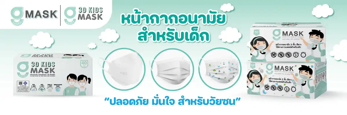 G Lucky หน้ากากอนามัยเด็ก 3D สีขาว บรรจุ 40 ชิ้น (แพ็กคู่)