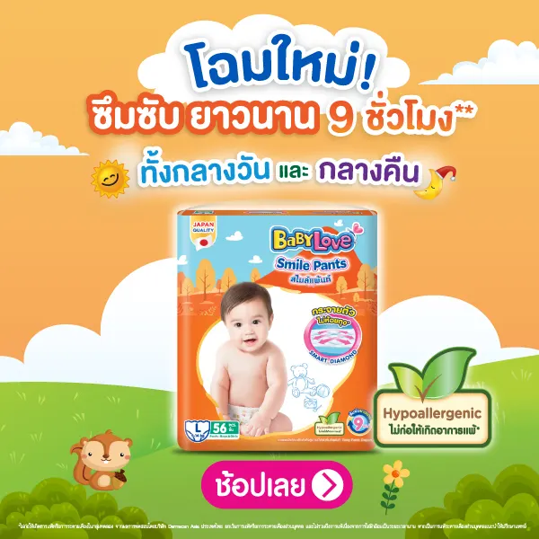 เบบี้เลิฟ กางเกงผ้าอ้อม รุ่นสไมล์ แพ้นท์ ยกลัง (มีไซส์ S-XXXL)