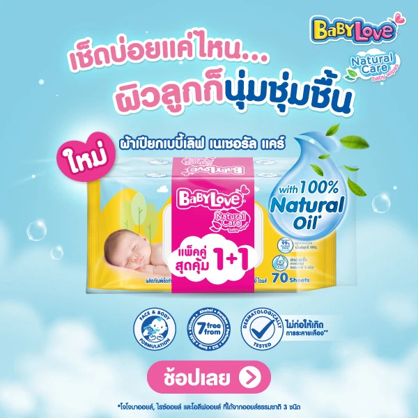 เบบี้เลิฟ เนเชอรัล แคร์ เบบี้ไวพส์ 70 แผ่น (แพ็ก 1 แถม 1)