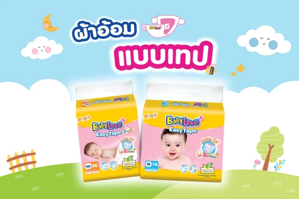 เบบี้เลิฟ ผ้าอ้อมเด็ก อีซี่ เทป ขนาดเมก้า (มีไซส์ NB-M)