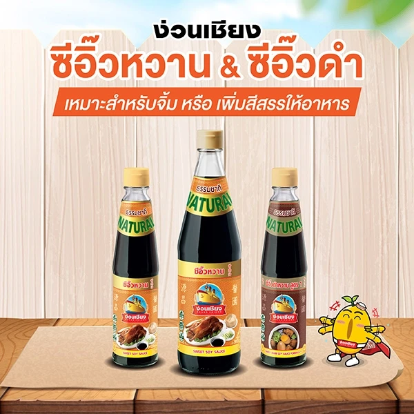"ซีอิ๊วหวาน ตราง่วนเชียง" หอมอร่อยเพราะเคี่ยวจากน้ำตาลอ้อยธรรมชาติ 100% และใช้น้ำซีอิ๊วชั้นดี ในการปรุงรสชาติ ไม่ใส่ผงชูรส ไม่ใส่สี ไม่ใส่วัตถุกันเสีย เหมาะสำหรับใช้เป็นเครื่องจิ้ม หมูหัน เป็ดปักกิ่ง หมูกรอบ ไก่นึ่ง ข้าวมันไก่ และสามารถปรุงรสอาหารได้ทั้งเมนูต้ม ตุ๋น และผัด