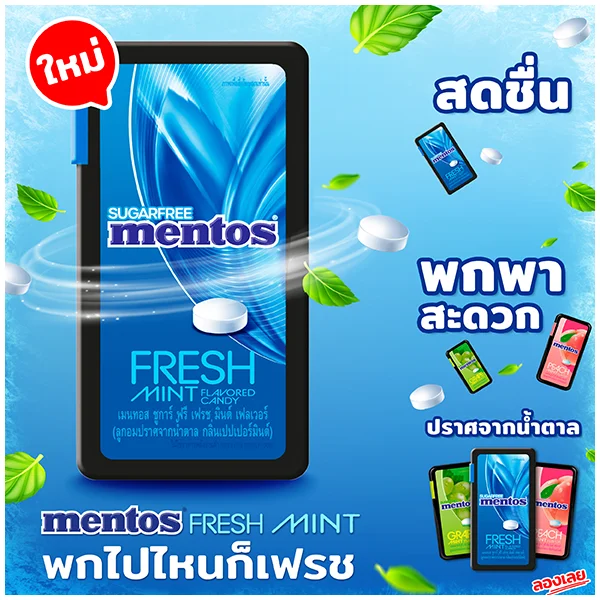 เมนทอส ลูกอมรสมินต์ ซิปล็อค 48.6 กรัม (แพ็ก 10 ชิ้น)