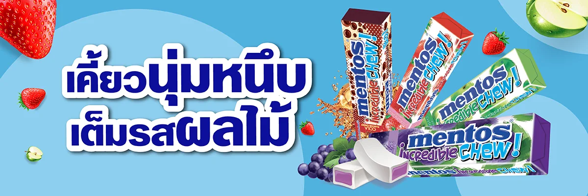 เมนทอส อินเครดิเบิ้ลชิว ลูกอมรสสตรอเบอร์รี่ 45 กรัม (แพ็ก 20 ชิ้น)