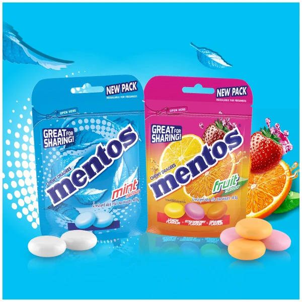 เมนทอส ลูกอมรสผลไม้ ซิปล็อค 48.6 กรัม (แพ็ก 10 ชิ้น)