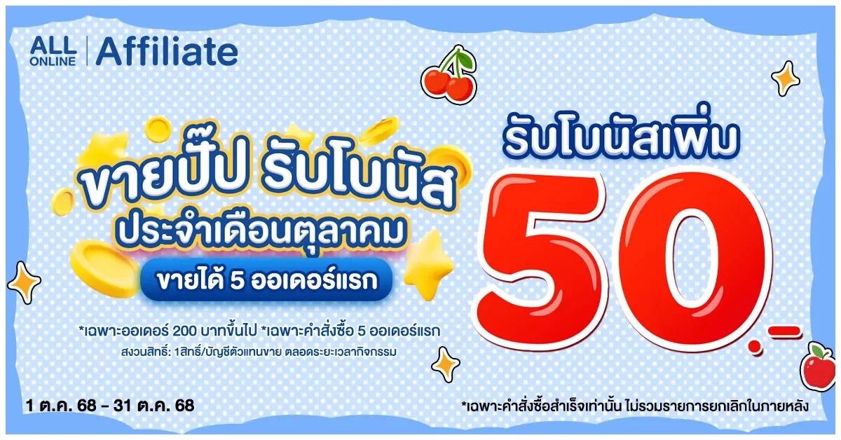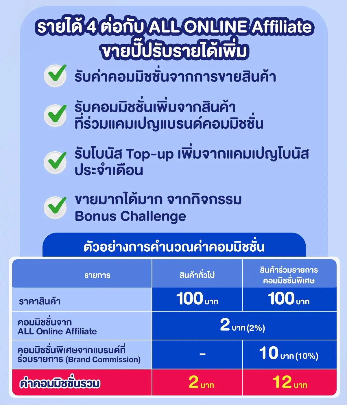 *หากคำสั่งซื้อของลูกค้าไม่มีการยกเลิกในภายหลัง ท่านจะได้รับค่าคอมมิชชันจากการขาย