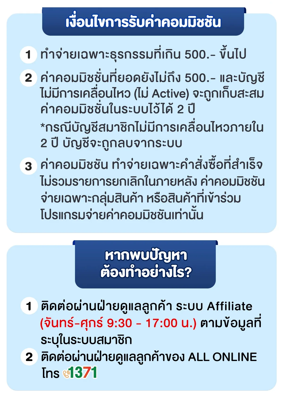 *ตัวอย่าง เมื่อตัดรอบในวันที่ 1-15 เม.ย. จะได้รับค่าคอมมิชชันภายใน 1 พ.ค