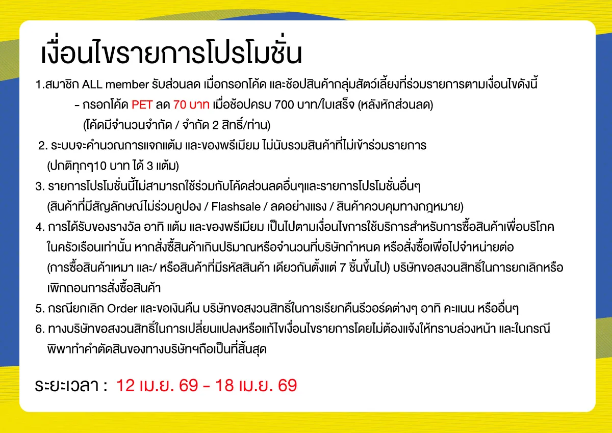 เงื่อนไขคูปอง Happy Pets