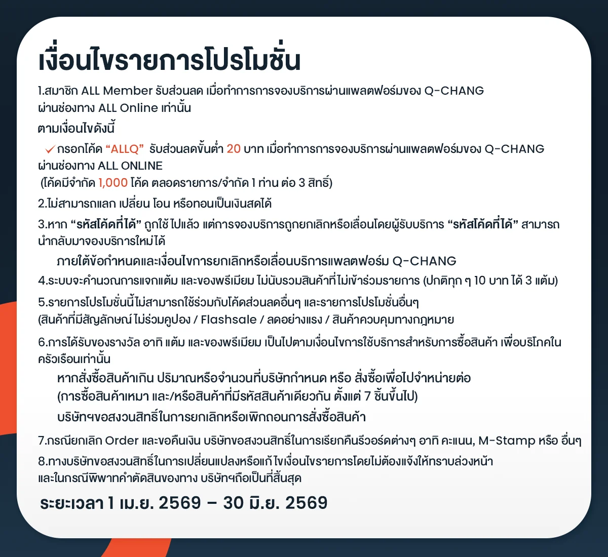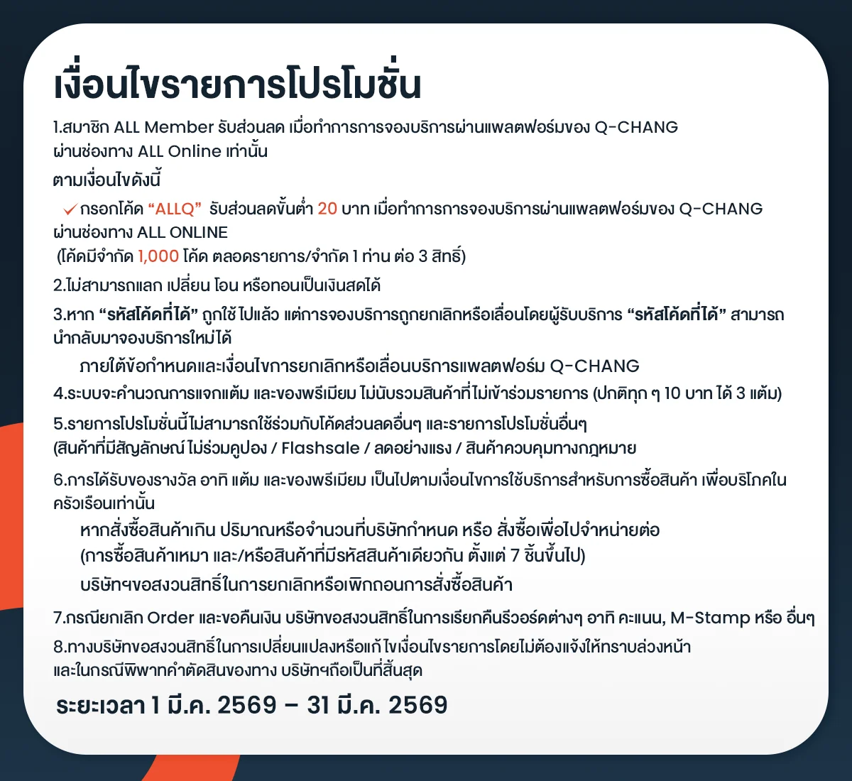 เงื่อนไขการใช้โค้ด Q-Chang | AllOnline