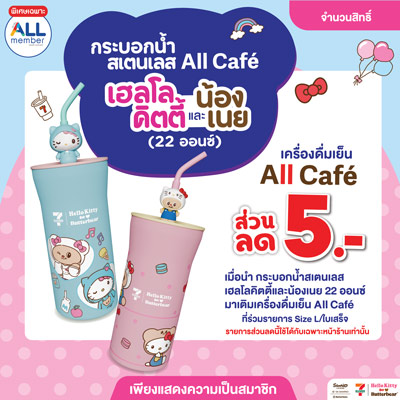 กระบอกน้ำสเตนเลส All Cafe เฮลโล คิตตี้ x น้องเนย (ชมพู) 22 oz. - 7-ELEVEN, อุปกรณ์บนโต๊ะอาหาร