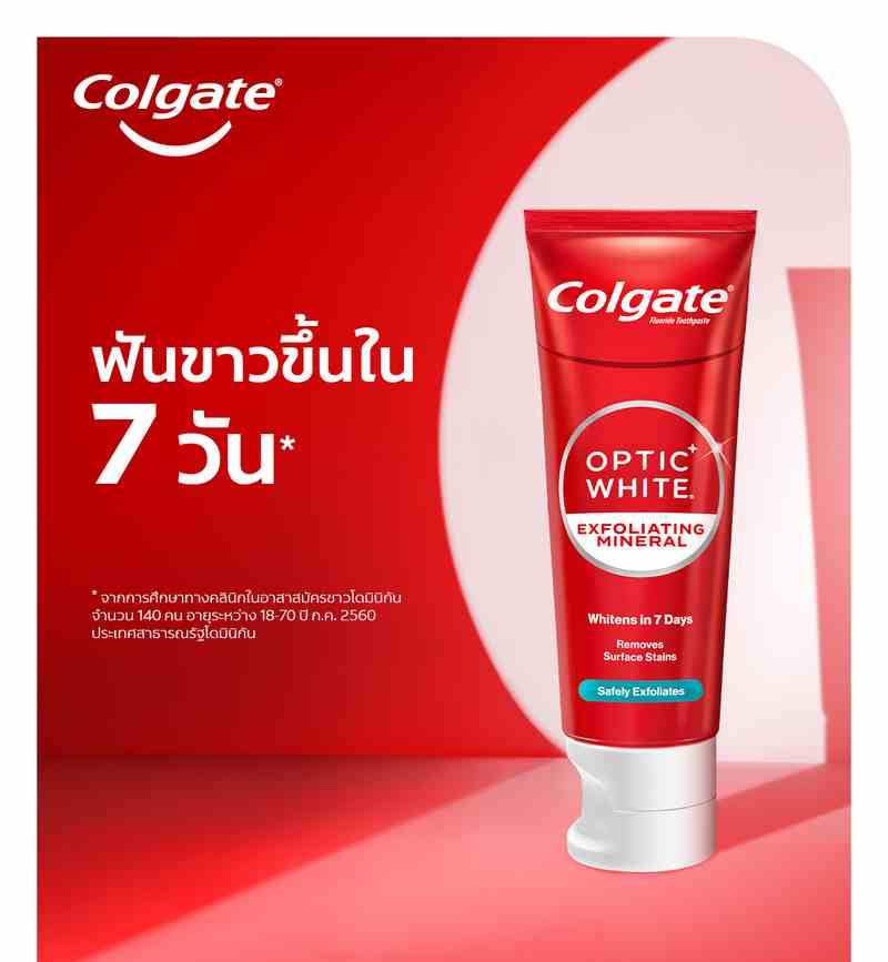 ยาสีฟันที่ช่วยดูแลช่องปาก เหงือก และฟันของคุณให้แข็งแรง พร้อมป้องกันการเกิดฟันผุ นอกจากนี้ยังช่วยให้คุณมีกลิ่นปากที่หอมและมีฟันที่ขาวสะอาดอย่างเป็นธรรมชาติ เพิ่มความมั่นใจในการสนทนา เพื่อให้การสื่อสารผ่านไปด้วยดี ไม่ติดขัดมาดูแลช่องปากของคุณด้วย คอลเกต ยาสีฟัน อ๊อฟติคไวท์ พลัสชายน์ ยาสีฟันเพื่อฟันขาว สามารถขจัดคราบที่ฟันได้อย่างอ่อนโยนและดูแลปัญหาสุขภาพเหงือกและฟันได้อย่างล้ำลึก ทำให้ช่องปากสะอาด ลมหายใจสดชื่น พร้อมมี Micro-Crystal Particles ที่ช่วยขัดผิวฟันให้ดูเงางาม เพื่อรอยยิ้มที่สดใสเป็นประกาย