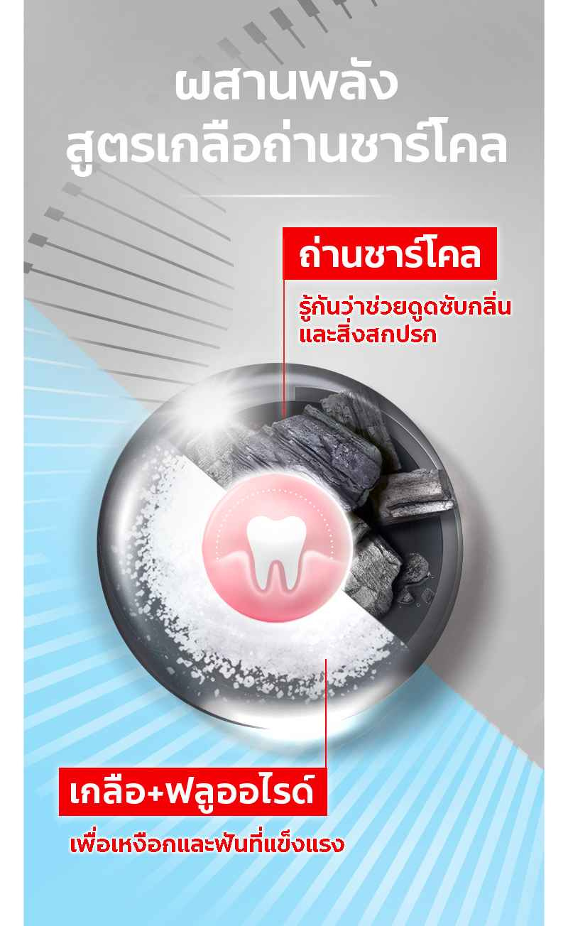 - ยาสีฟันสูตรเกลือ ถ่านชาร์โคล 2 พลังธรรมชาติ เกลือผสมถ่านชาร์โคลช่วยให้หมดกังวลเรื่องกลิ่นปาก