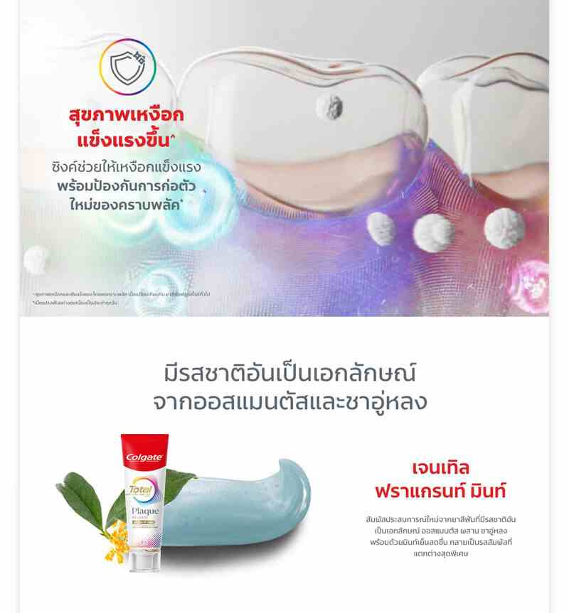 ผสานอะมิโนโฟม & ซิงค์ มิเนอรัลส์ ช่วยจัดการคราบพลัคได้อย่างอ่อนโยนแต่มีประสิทธิภาพ สามารถจัดการคราบพลัคได้ดีขึ้น 3X* เพื่อสุขภาพเหงือกที่แข็งแรงขึ้น+ พร้อมให้คุณสัมผัสประสบการณ์ใหม่ในการแปรงฟันไปกับโฟมนุ่มละมุน, รสหอมหมื่นลี้และชาอู่หลง, และความเย็นสดชื่น