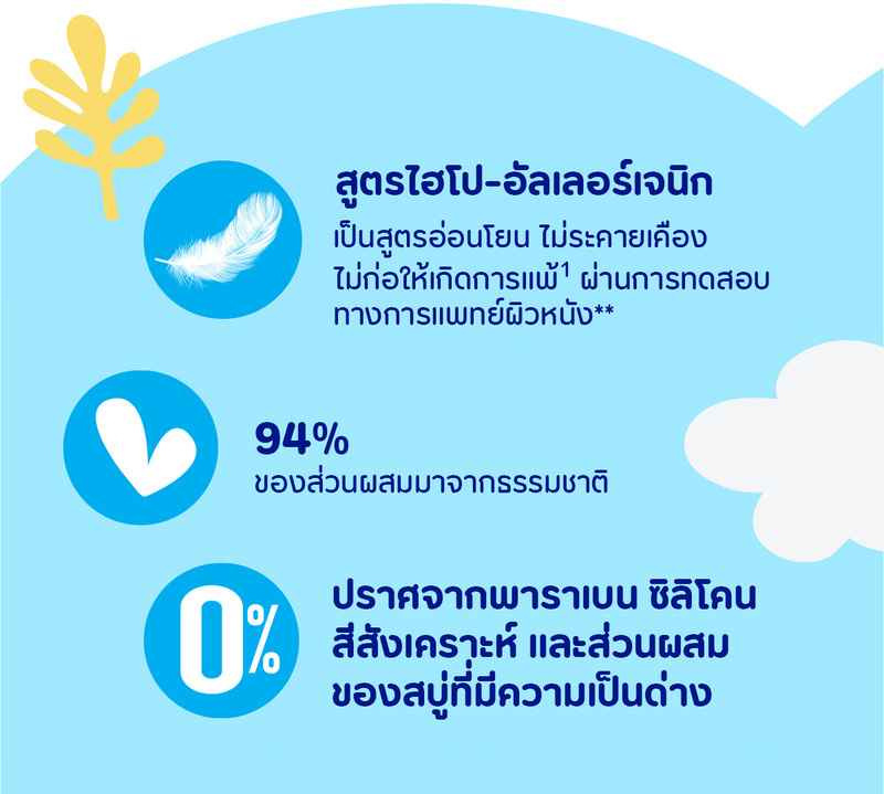 - ผ่านการทดสอบไฮโป-อัลเลอร์เจนิก*