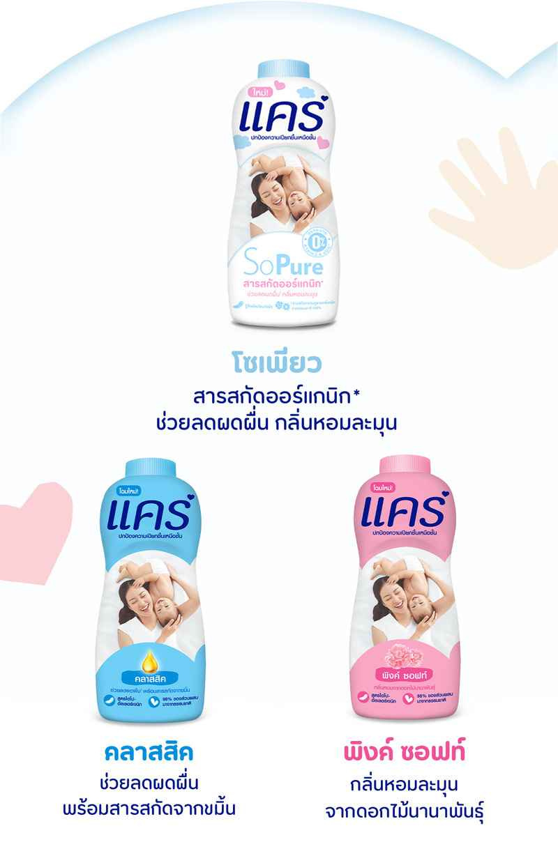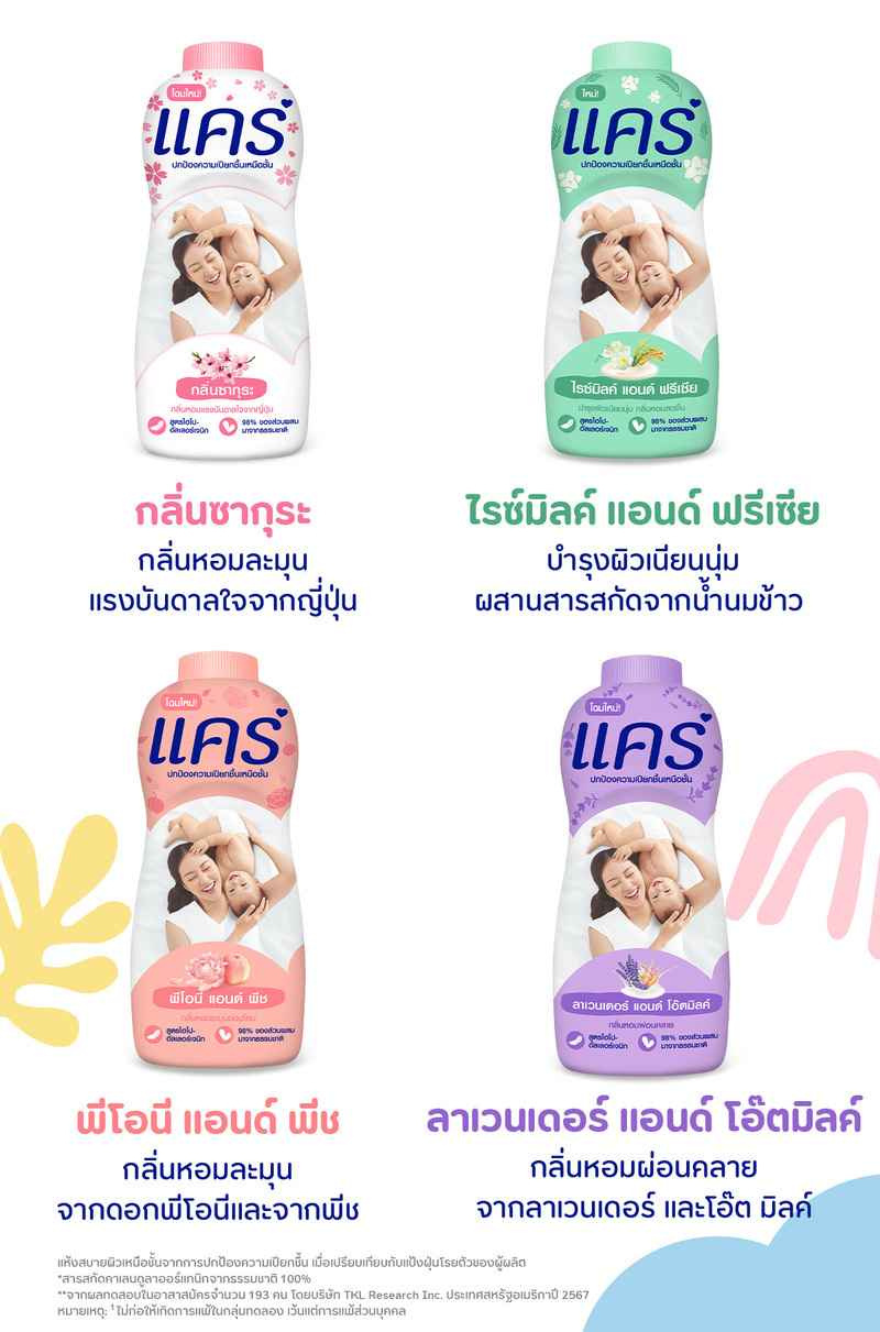 ช่วยลดผดผื่นที่เกิดจากความเปียกชื้น พร้อมมอบกลิ่นหอมอ่อนๆจากธรรมชาติ