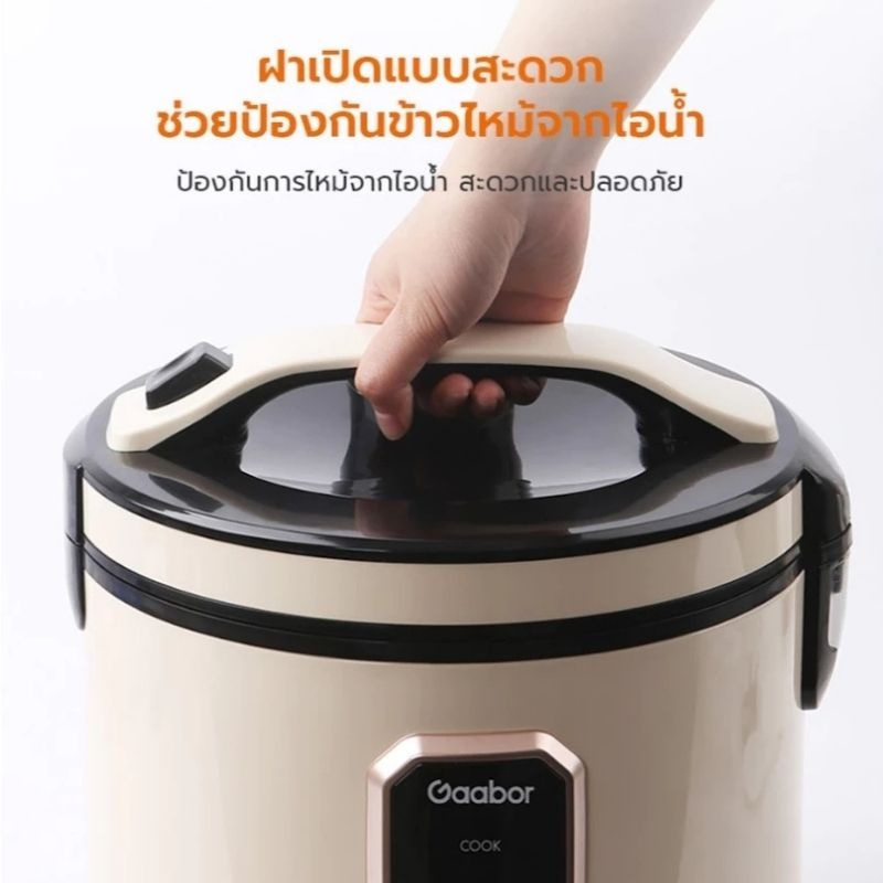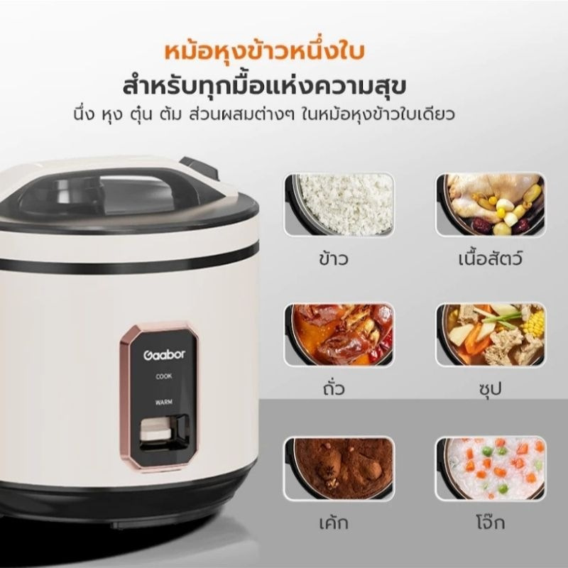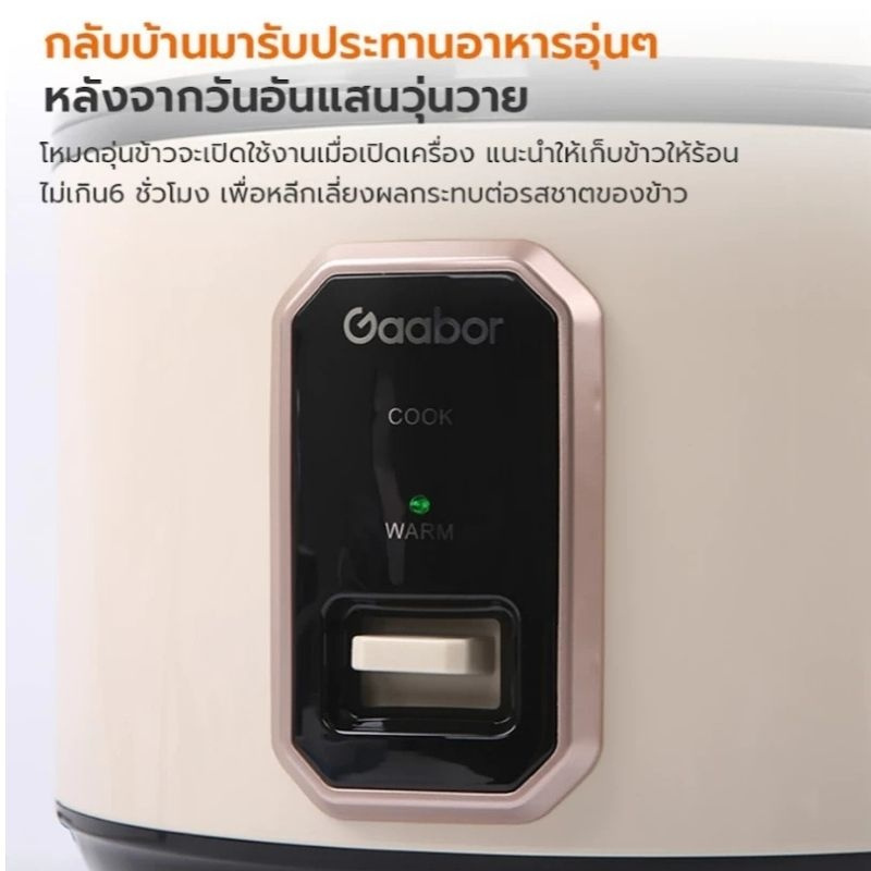 เสิร์ฟข้าวสวยร้อน ๆ ด้วยหม้อหุงข้าว จาก GAABOR ตอบโจทย์คนยุคใหม่เพราะมีความจุขนาด 1.8 ลิตร หุงข้าวสุกเร็วด้วยหม้อชั้นในอัปเกรดใหม่ นำความร้อนได้ดี ข้าวสุกไว ประหยัดเวลา ทั้งยังควบคุมอุณหภูมิได้อย่างแม่นยำ ป้องกันการสูญเสียทางโภชนาการ
