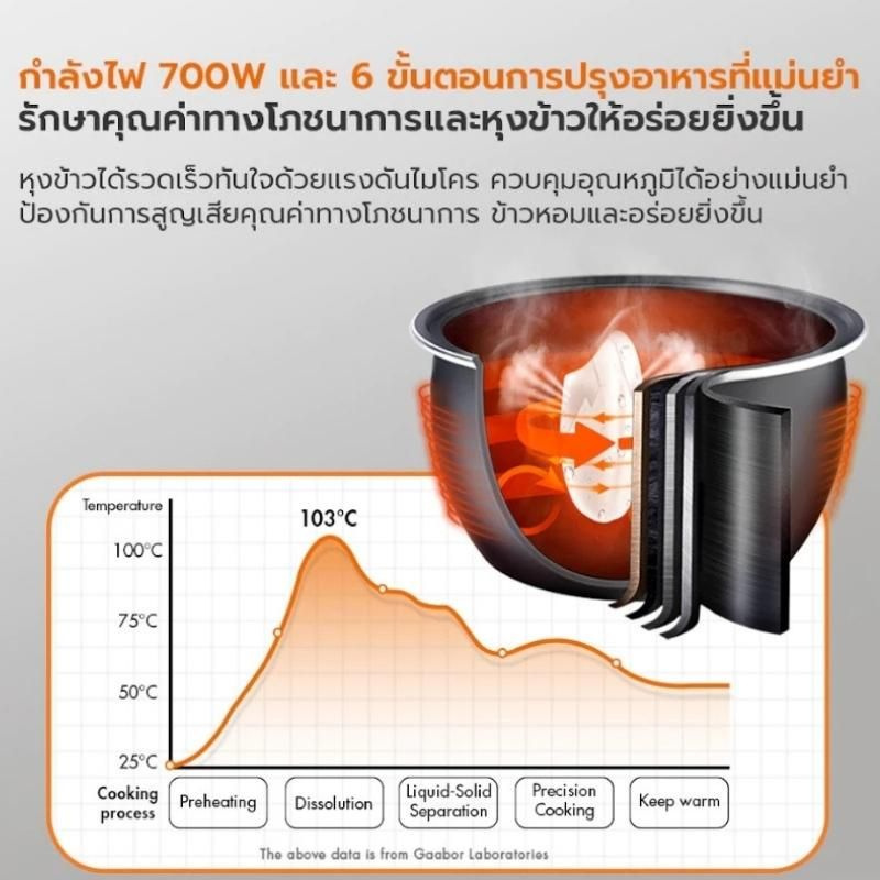กำลังไฟ 700 วัตต์ หุงข้าวได้รวดเร็ว