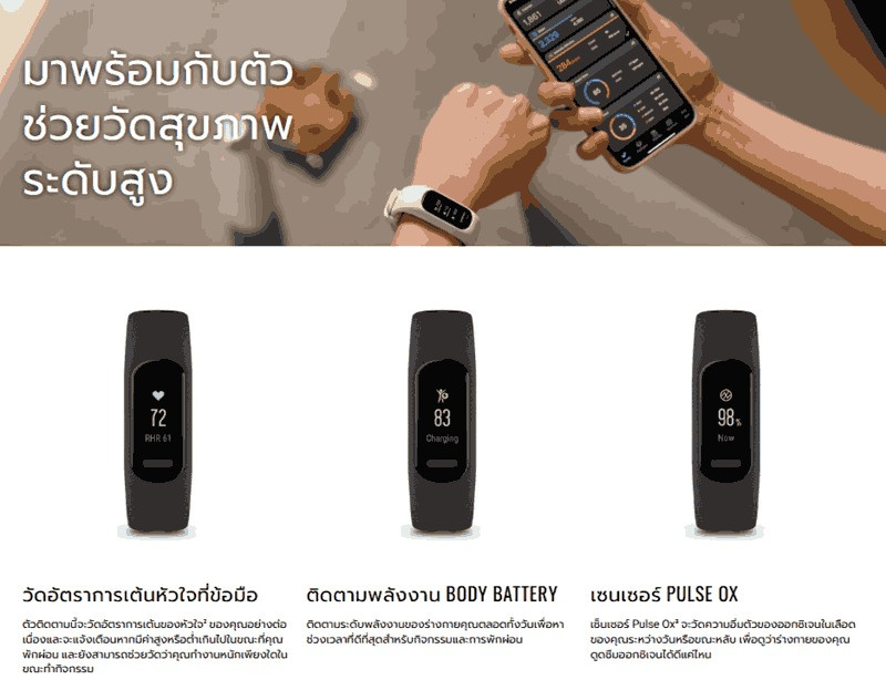 • เซ็นเซอร์ Pulse Ox จะวัดความอิ่มตัวของออกซิเจนในเลือด