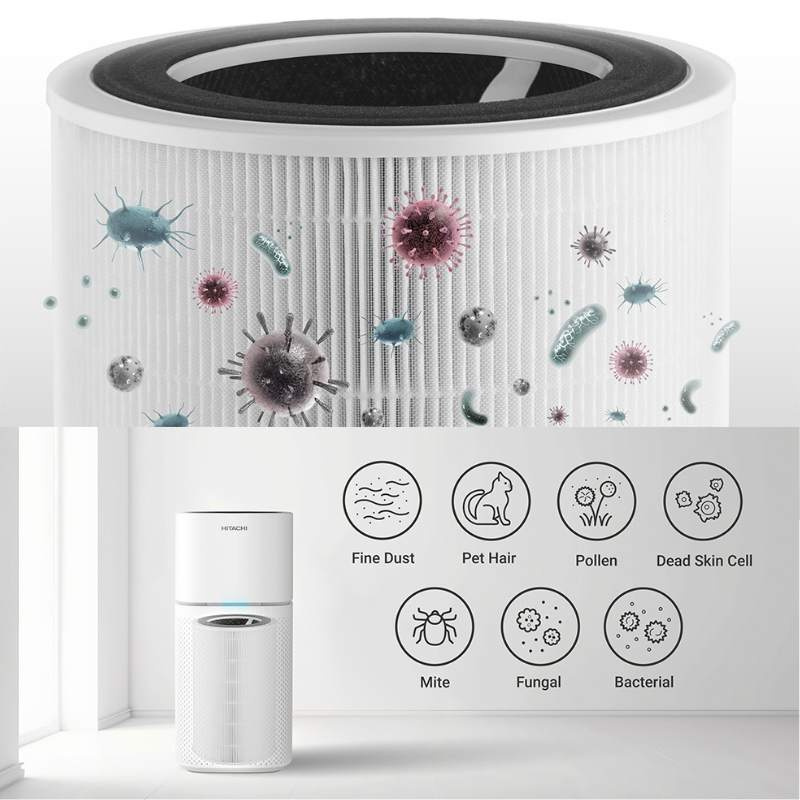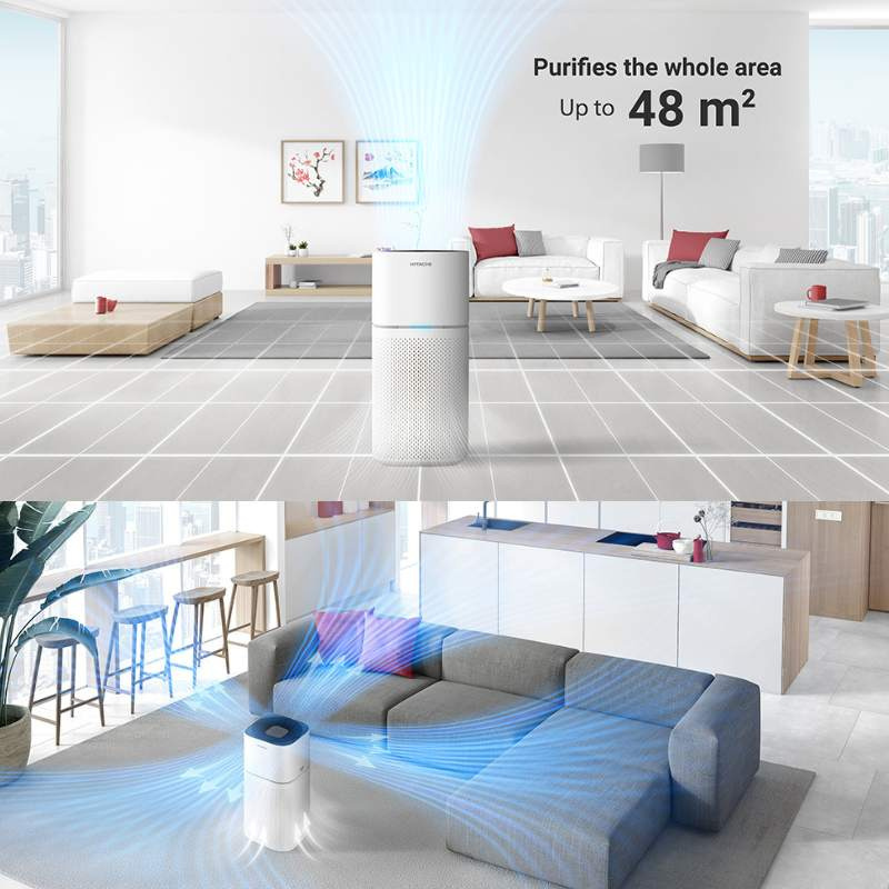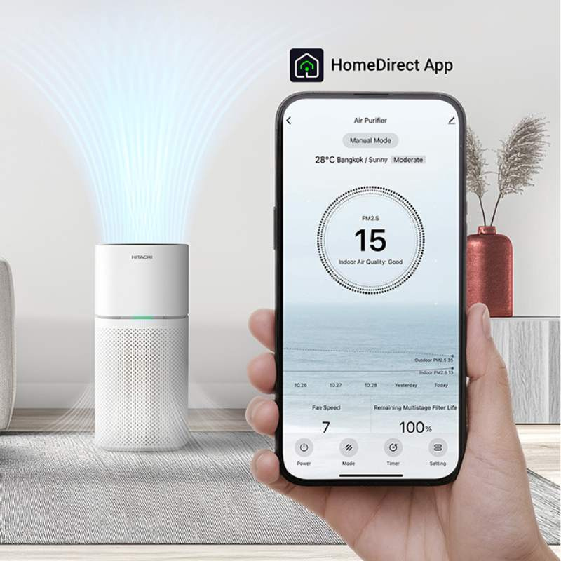 เครื่องฟอกอากาศรุ่นใหม่จากฮิตาชิ มอบอากาศบริสุทธิ์ได้ภายใน 10 นาที ด้วยค่า CADR สูงถึง 402 ลบ.ม./ชม. ครอบคลุมพื้นที่สูงสุด 48 ตร.ม. กรองละเอียดด้วยแผ่น HEPA H13 และคาร์บอนแอคทีฟ ดักจับฝุ่น PM2.5 แบคทีเรีย และกลิ่นไม่พึงประสงค์ได้กว่า 99% พร้อมระบบควบคุมอัจฉริยะผ่านสมาร์ทโฟน ให้คุณหายใจได้สะอาดทุกเวลา