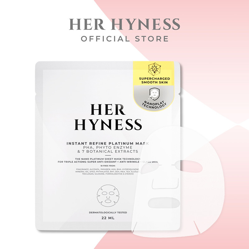 ใหม่! Her Hyness นาโนเเพลทินัมมาส์ก ผิวเนียน อัปเกรด! เทคโนโลยีเเผ่นมาส์กใหม่ ผสานนาโนเเพลทินัม เพิ่ม 10 เท่าบนเเผ่นบางขั้นสุด อัปเลเวลผิวฉ่ำ เนียนเเน่น กลาสสกินทันที! พร้อมเซรั่มเข้มข้น อัปผิวเรียบเนียน ลดรอยดำ รอยสิว