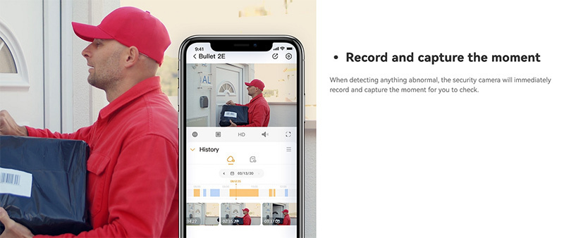 FEATURES : S mart Color Night Vision, Built-in Mic, Motion Detection, IP67 Weatherproof, Built-in Spotlight, Diversified storage (NVR, Cloud, SD up to 256GB)