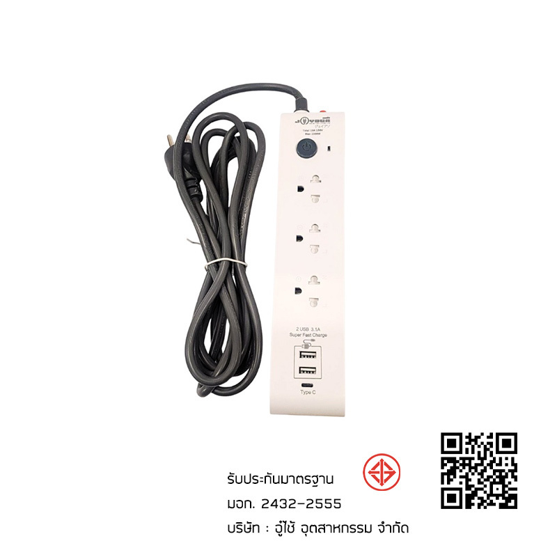 ปลั๊กไฟ 3 ช่อง 1 สวิตช์ 2 USB 1 TypeC