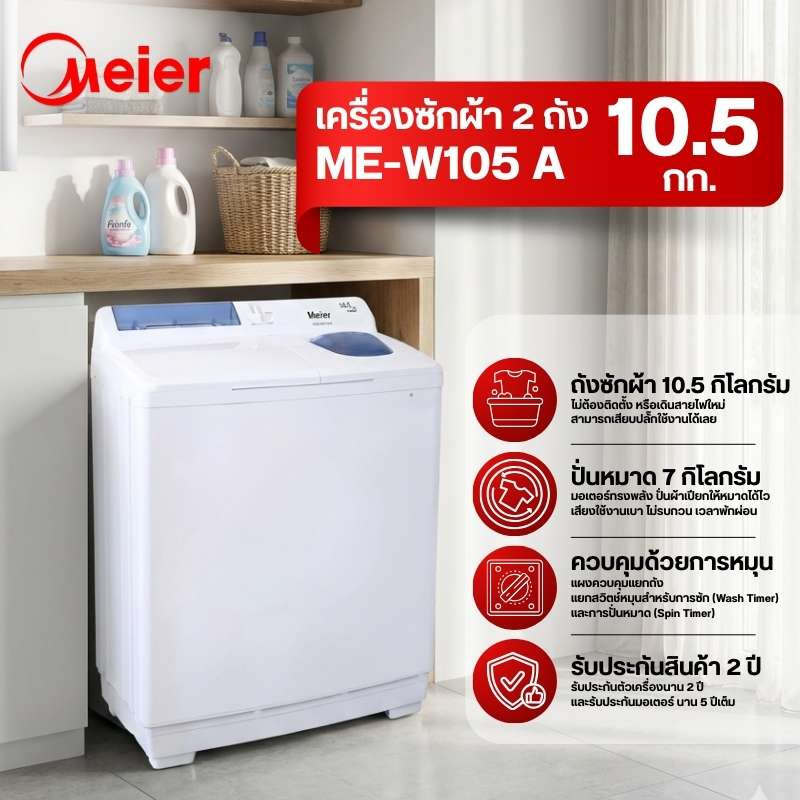 Meier เครื่องซักผ้า 2 ถัง 10.5 KG รุ่น ME-W105 A ขาว