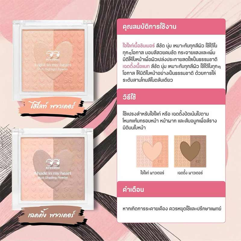 เฉดดิ้ง พาวเดอร์ มีเนื้อนุ่มละมุนและเบลนด์ง่าย ไม่เพียงเพิ่มสีสันให้พวงแก้มสวยงามเป็นเอกลักษณ์ แต่ยังเสริมความเปล่งปลั่งให้ผิวดูสุขภาพดีขึ้น และปรับรูปหน้าให้เรียวลงและคมชัดมากยิ่งขึ้น มาในรูปแบบตลับสีเรียบหรู ช่วยให้คุณสามารถสร้างลุคที่หลากหลายได้ ด้วยการไล่ระดับสามโทนสีในตลับเดียว ทำให้ได้ฟิล์มเรียบเนียนสนิทที่เข้ากับผิว สีสดชัดและติดทนยิ่งขึ้น
