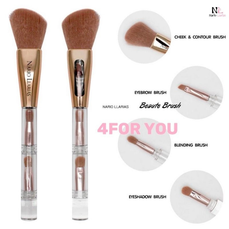 - Nario Llarias แปรงแต่งหน้า Elegant de Beaute Brush (4 in 1)แปรงแต่งหน้า 4 หัวแปรงในด้ามเดียว ขนแปรงสังเคราะห์ ขนนุ่ม ไม่บาดหน้า จับผงสีได้เป็นอย่างดี ด้ามจับเป็นพลาสติกหนาและอลูมิเนียม แข็งแรง คงทน ดีไซน์สวย พกพาสะดวก