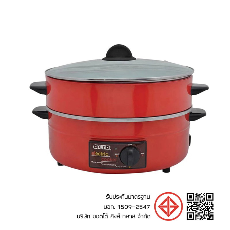 ออตโต้ กระทะไฟฟ้า รุ่น SP-314G ประกอบอาหารได้หลายประเภททั้ง ทอด ผัด ต้ม นึ่ง อุ่นอาหาร รูปลักษณ์สวยงาม เป็นสีเดียวทั้งใบพ่นด้วยสีฝุ่นอีพ็อคซี่ ทำให้เกิดความทนทานต่อการใช้งาน ฝาและตัวเครื่องทำจากอะลูมิเนียม มีเทอร์โมสตัทควบคุมความร้อนให้สม่ำเสมอและตัดไฟอัตโนมัติ สามารถปรับอุณหภูมิได้ตามต้องการ มีซึ้งสำหรับไว้นึ่งและอุ่นอาหารได้