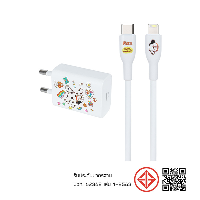 ชุดชาร์จอเนกประสงค์ Type C to Lightning ริซซ์ x ฟลัฟฟี่ ออมเล็ต ลายลิขสิทธิ์สุดน่ารัก ชาร์จเร็ว ปลอดภัย 25W สายยาว 1.2เมตร