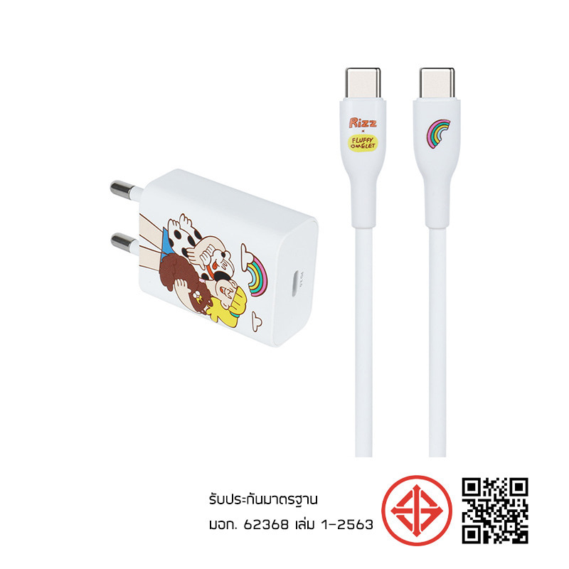 ชุดชาร์จอเนกประสงค์ Type C to Type C ริซซ์ x ฟลัฟฟี่ ออมเล็ต ลายลิขสิทธิ์สุดน่ารัก ชาร์จเร็ว ปลอดภัย 25W สายยาว 1.2เมตร