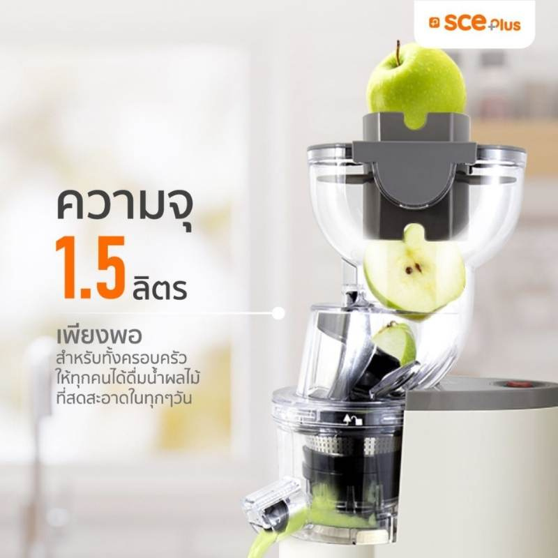 SCE Plus Bud Juicer เครื่องคั้นน้ำผักผลไม้ สกัดเย็น เพื่อสุขภาพ เก็บล็อกความสดและคุณค่าทางสารอาหารได้อย่างครบถ้วน มาพร้อมกับการทำงานที่มีประสิทธิภาพ สกัดน้ำผลไม้ได้อย่างดีเยี่ยมทำความสะอาดง่าย ดีไซน์สวนงาม ใช้งานสะดวก ใช้วัสดุ Food Grade ปลอดภัยไร้กังวล ไม่เป็นอันตรายต่อสุขภาพ มีความทนทานเป็นพิเศษ ความจุ 1.5 ลิตร เพียงพอสำหรับทั้งครอบครัวให้ทุกคนได้ดื่มน้ำผลไม้ที่สดสะอาดในทุกๆวัน