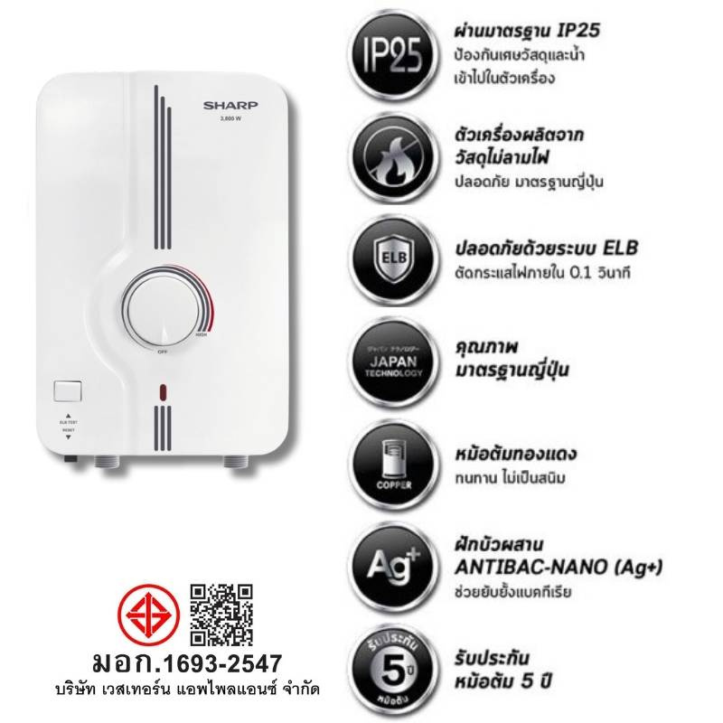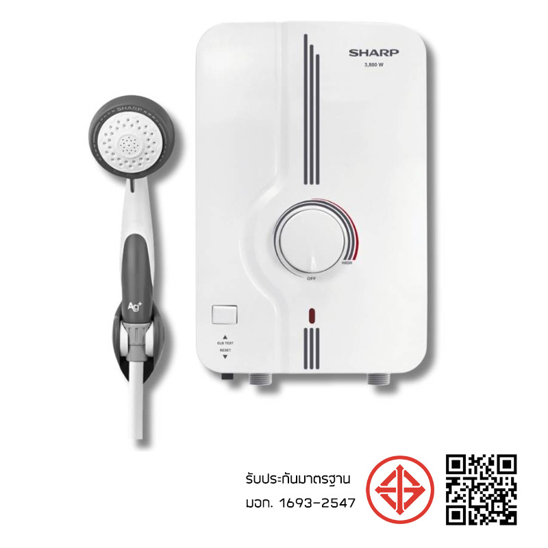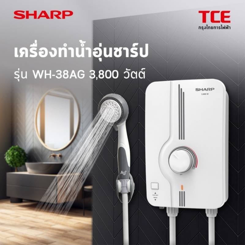 เครื่องทำน้ำอุ่นชาร์ป WH-38AG รุ่น 3,800 วัตต์ พร้อมฝักบัว Ag+ ช่วยยับยั้งแบคทีเรีย ประหยัดไฟ ปลอดภัยทุกครั้งที่อาบ คุณภาพมาตรฐานญี่ปุ่น