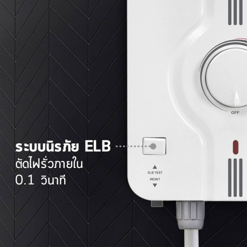 - ปลอดภัยด้วยระบบ ELB ตัดกระแสไฟภายใน 0.1 วินาที เมื่อเกิดไฟรั่วเพียง 15 มิลลิแอมป์