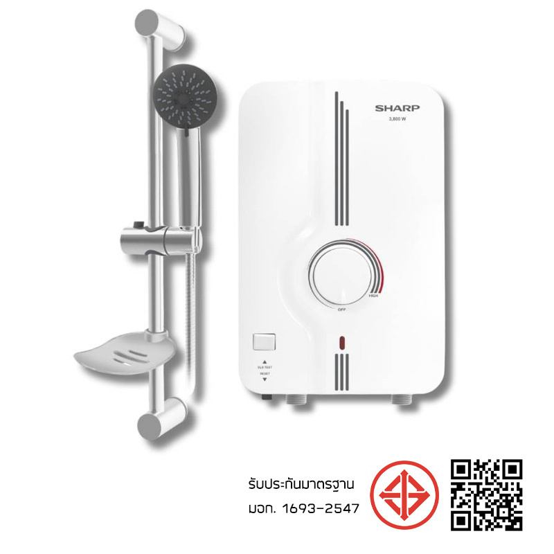 เครื่องทำน้ำอุ่นชาร์ป WH-38SLB รุ่น 3,800 วัตต์ พร้อมชุดแขวนฝักบัวสไลด์บาร์ ประหยัดไฟ ปลอดภัยกว่า คุณภาพมาตรฐานญี่ปุ่น