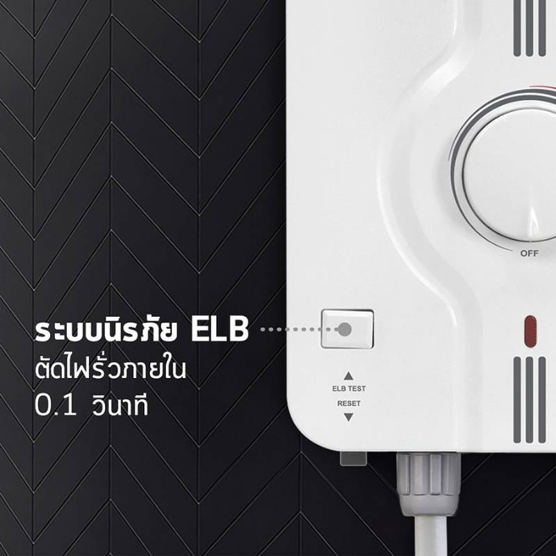 - ปลอดภัยด้วยระบบ ELB ตัดกระแสไฟภายใน 0.1 วินาที เมื่อเกิดไฟรั่วเพียง 15 มิลลิแอมป์