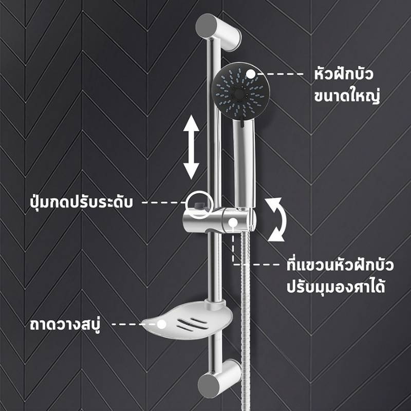 - หัวฝักบัวปรับได้ 3 ระดับ