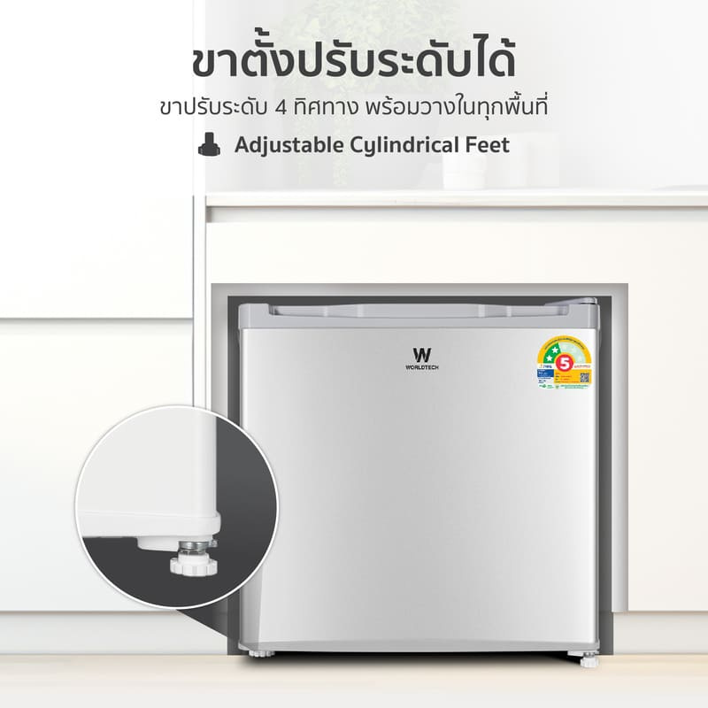 - ขาตั้งสามารถปรับระดับได้ ช่วยให้วางตู้เย็นได้อย่างมั่นคง