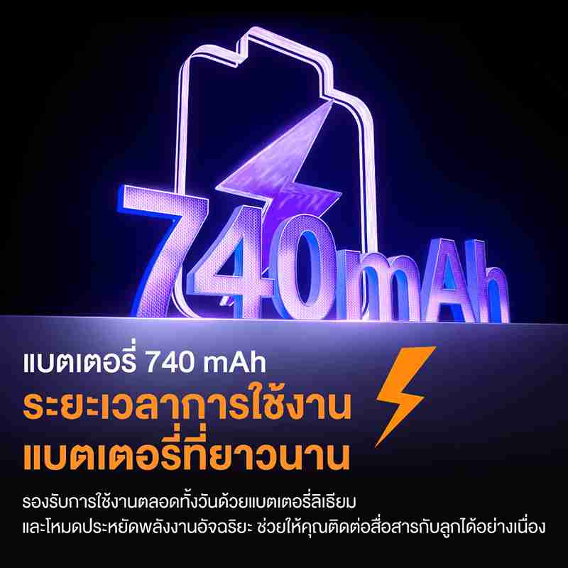 แบตเตอรี่ความจุ 740mAh (มีโหมดประหยัดพลังงานอัตโนมัติ)