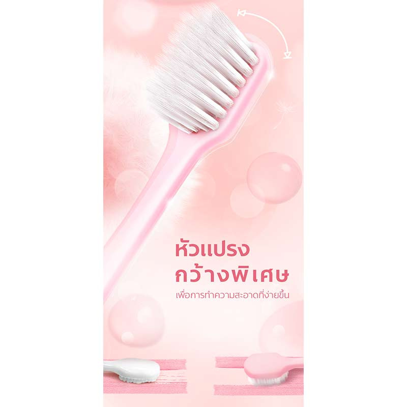 มีหัวเเปรงที่กว้างเป็นพิเศษ เพื่อการทำความสะอาดซอกฟันเเละเหงือกที่ง่ายขึ้น