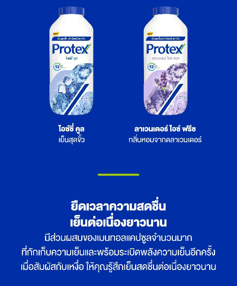 - แป้งเย็น โพรเทคส์ ไอซ์ซี่คูลรู้สึกหอมยาวนาน 12 ชั่วโมง