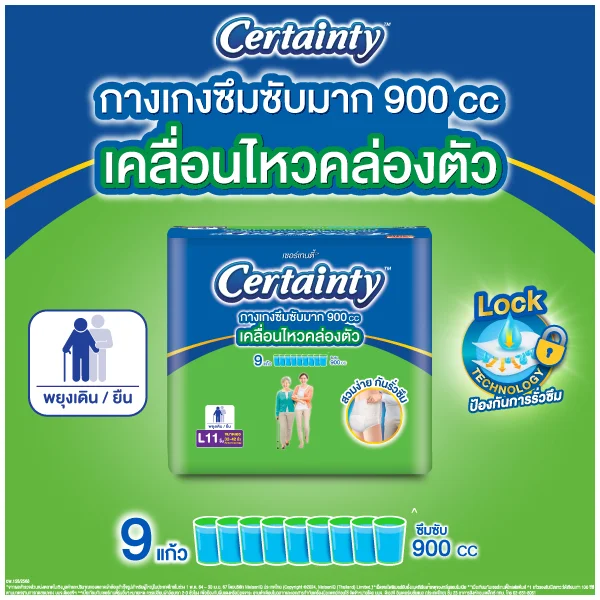 เซอร์เทนตี้ กางเกงผ้าอ้อมผู้ใหญ่ ซุปเปอร์แพ้นส์ ขนาดปกติ XL (ห่อละ 9 ชิ้น)