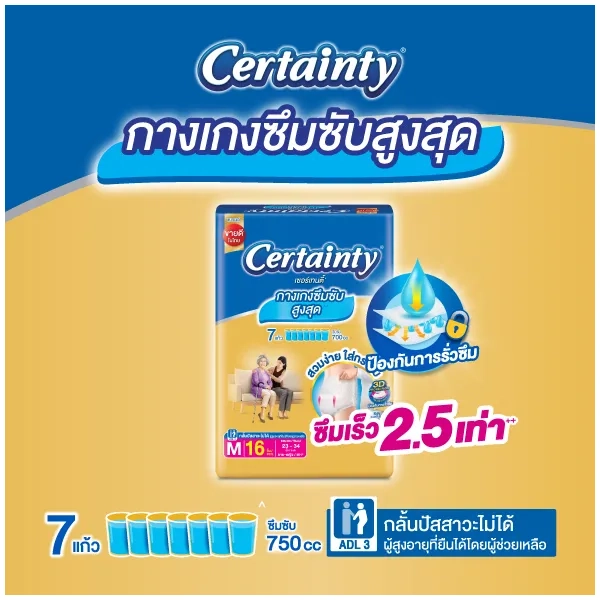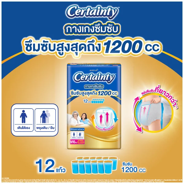 เซอร์เทนตี้ กางเกงผ้าอ้อมผู้ใหญ่ โกล์ดแพ้นส์ (มีไซส์ M-XL)