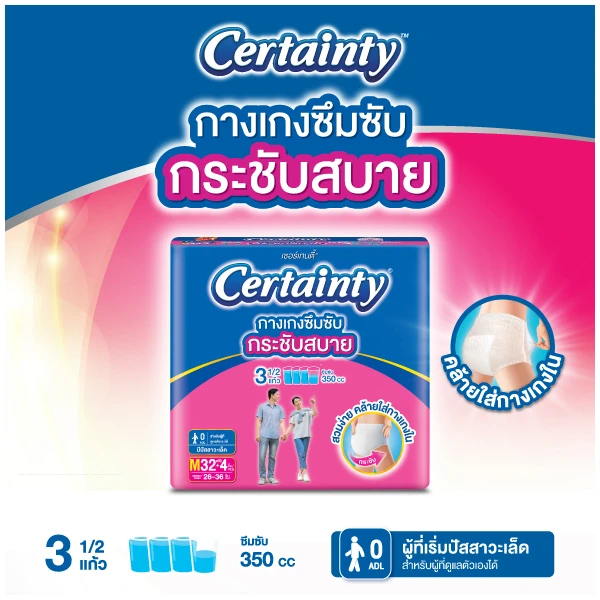 เซอร์เทนตี้ผ้าอ้อมผู้ใหญ่แบบกางเกง ซุปเปอร์แพ้นส์ (มีไซส์ M-XL)