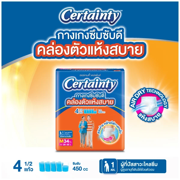 เซอร์เทนตี้ กางเกงผ้าอ้อมผู้ใหญ่ สบายแพ้นส์ ขนาดจัมโบ้ (มีไซส์ M-L)