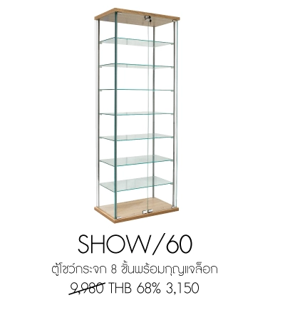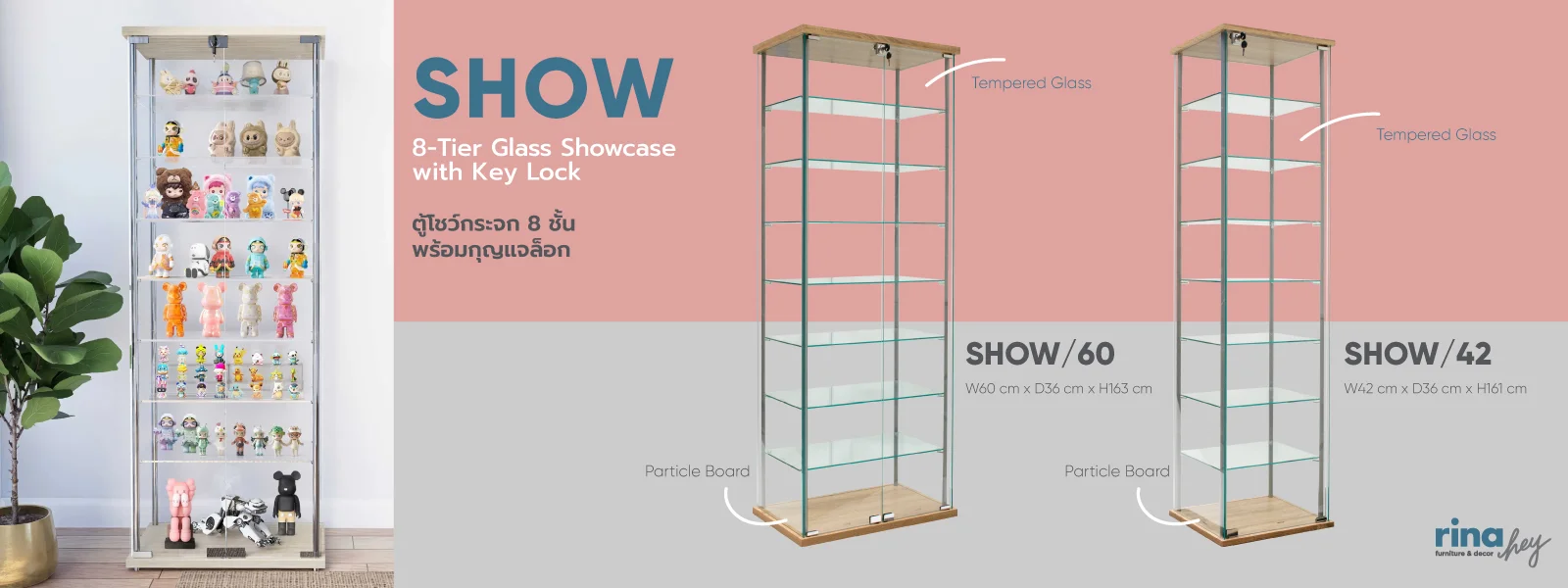 Rina Hey ตู้โชว์กระจก 8 ชั้นพร้อมกุญแจล็อก SHOW/60 ไม้ธรรมชาติ
