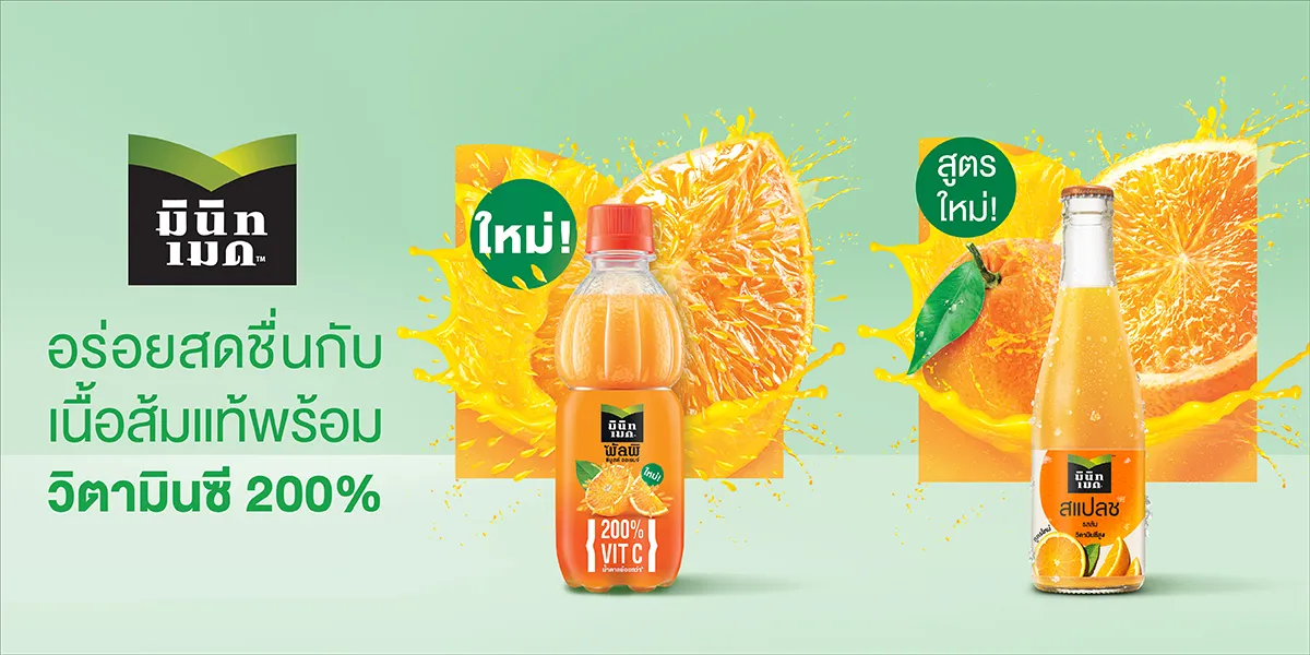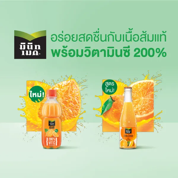มินิทเมด พัลพี น้ำส้มแมนดาริน ผสมเนื้อส้ม 335 มล. (ยกลัง 24 ขวด)
